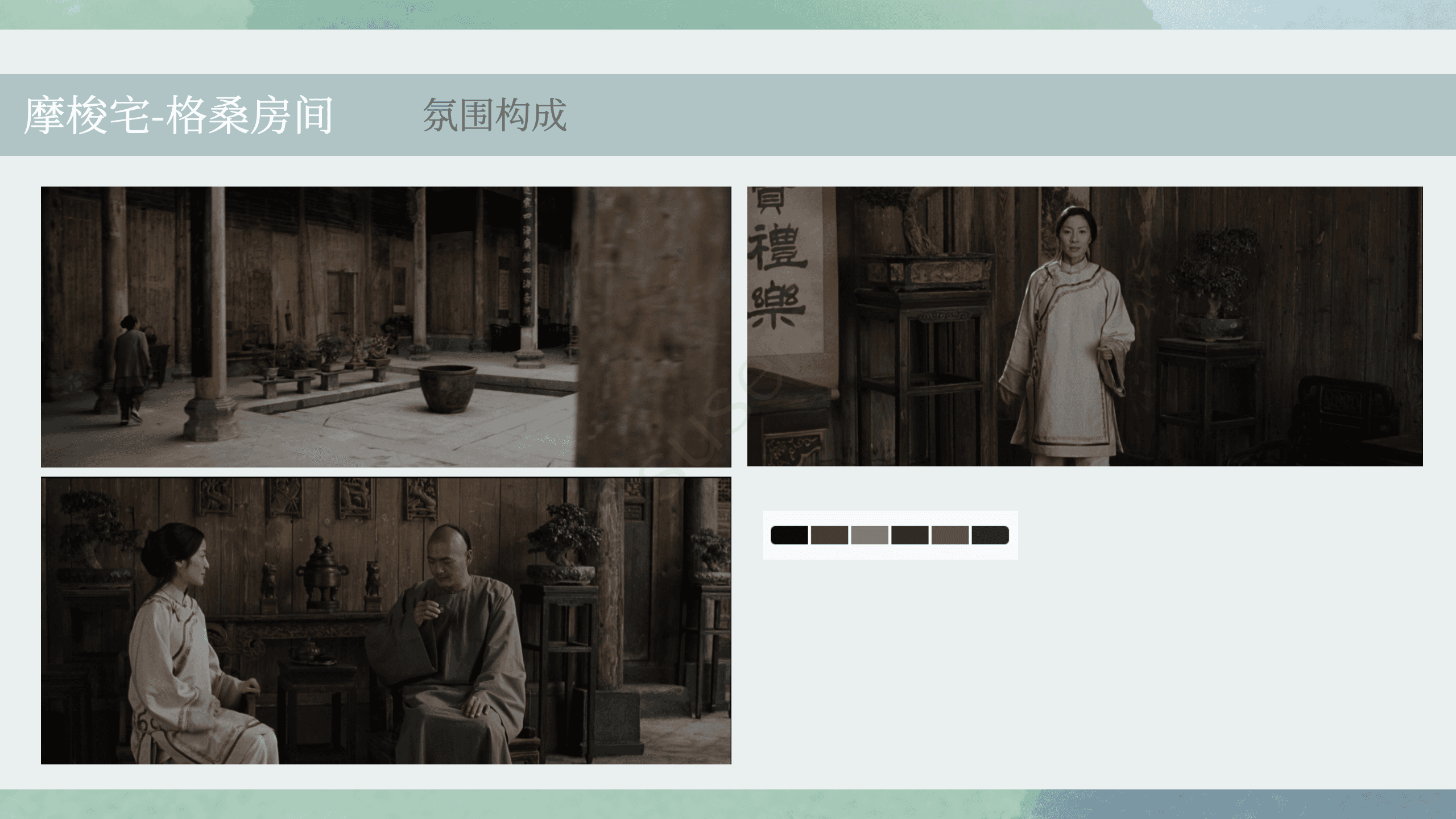 室内空间主要承载人物的心理状态表达,并随剧情推进发生变化: