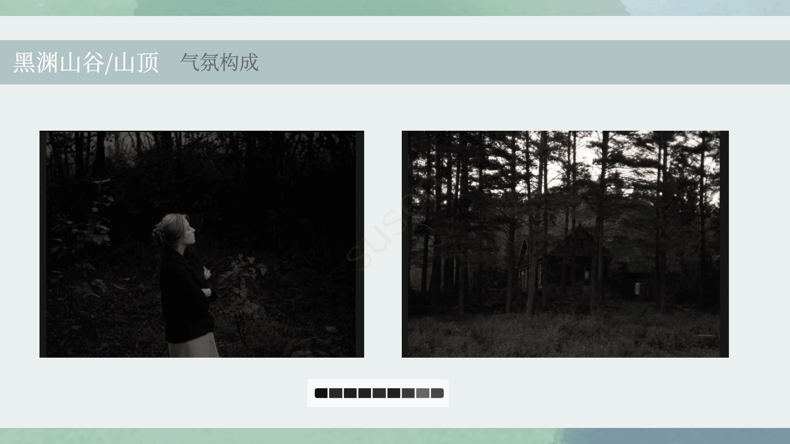 → 表达父权压迫、家庭束缚、内心困境室外/自然环境(30%)